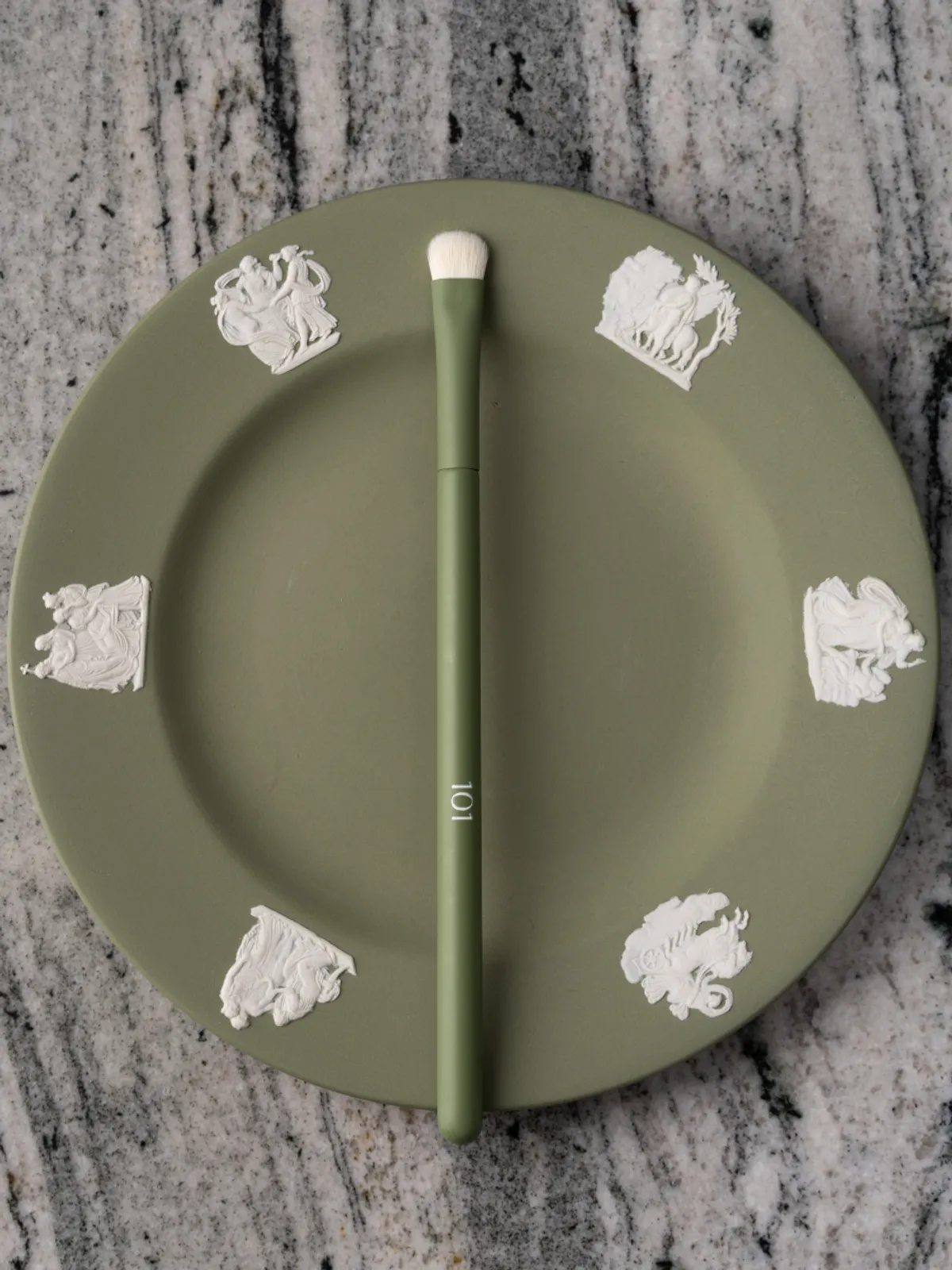 Кисть из серии зелёных кистей для макияжа вдохновлена фарфоровым искусством 18 века под авторством Джозайи Веджвуда, настоящего новатора в своей области.
