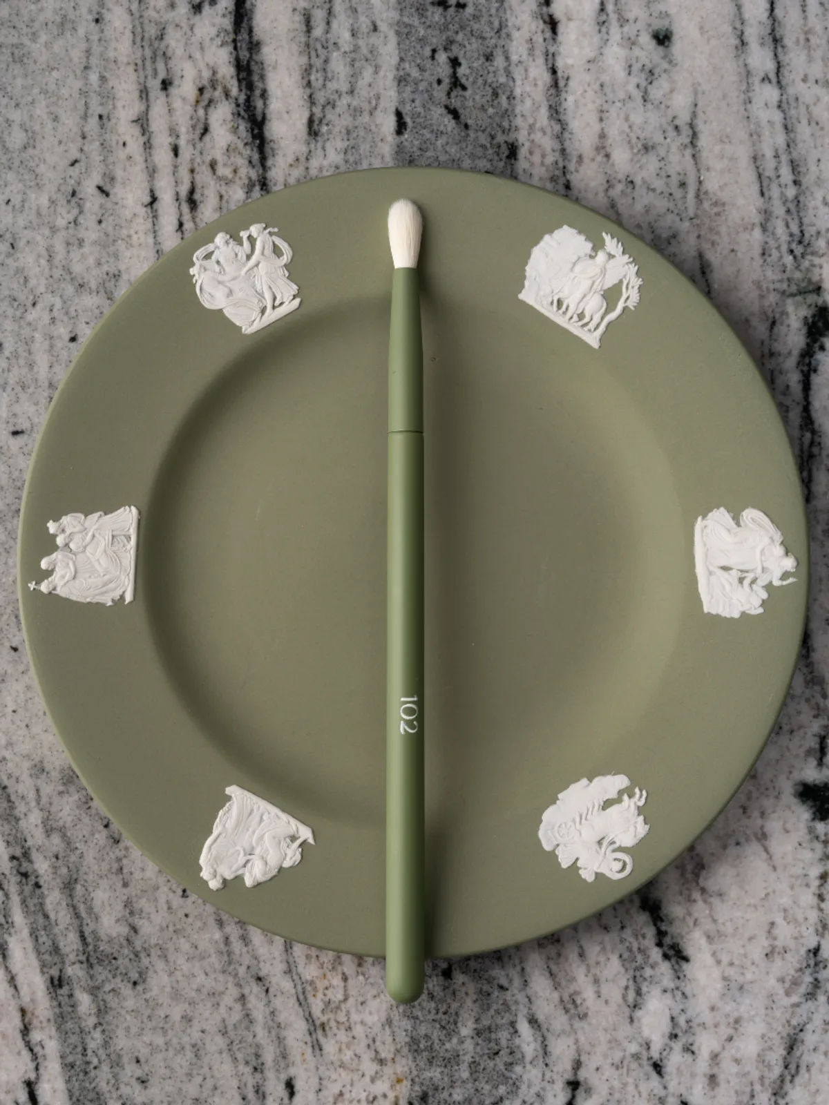Кисть из серии зелёных кистей для макияжа вдохновлена фарфоровым искусством 18 века под авторством Джозайи Веджвуда, настоящего новатора в своей области.
