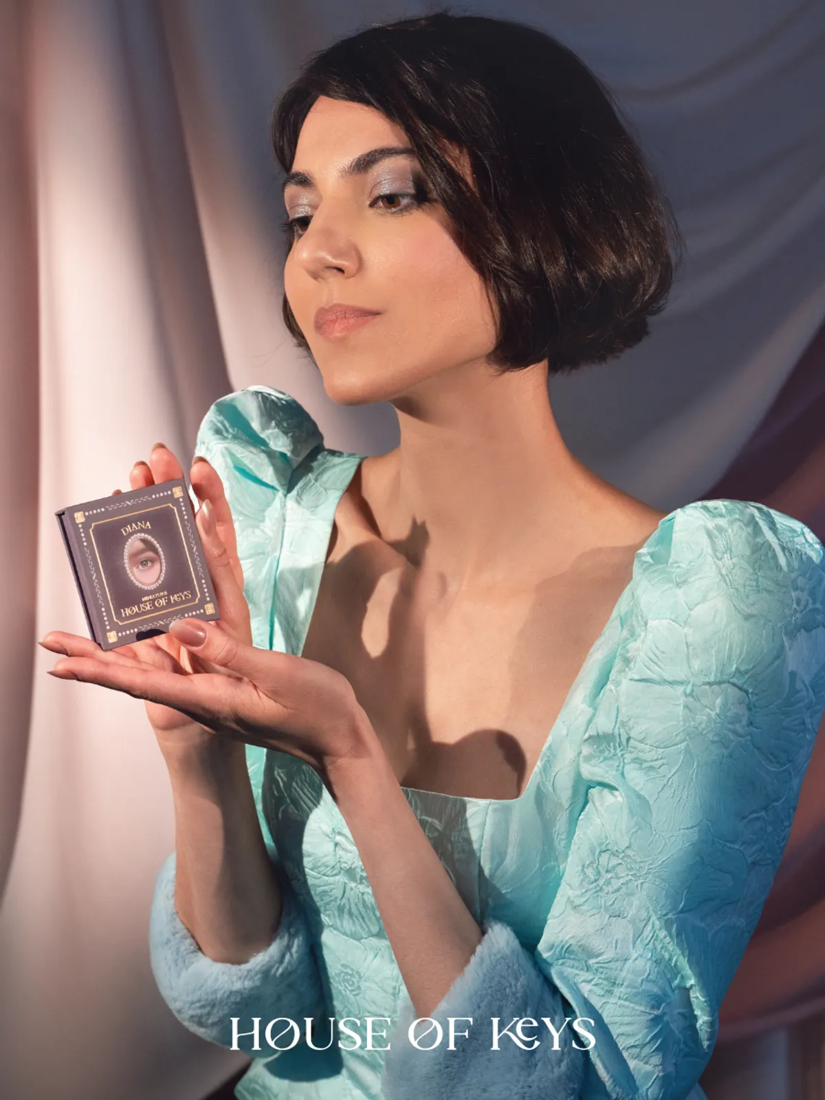 Миниатюрная нюдовая палетка DIANA в холодной гамме с глубокими и сверкающими оттенками.