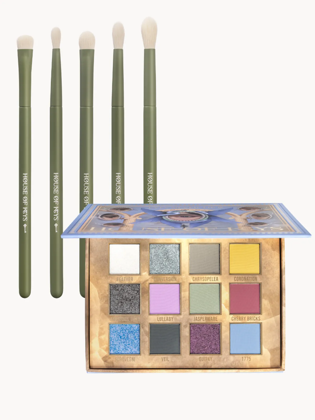 Набор из 5 кистей GRACEFUL GREEN и палетка теней EYES NEVER LIE часть III