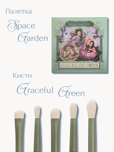 Набор из 5 кистей GRACEFUL GREEN и палетка теней SPACE GARDEN