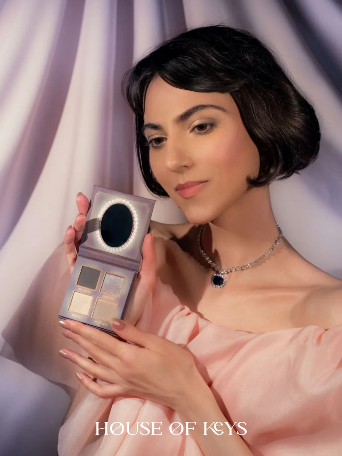 Миниатюрная нюдовая палетка DIANA в холодной гамме с глубокими и сверкающими оттенками.
