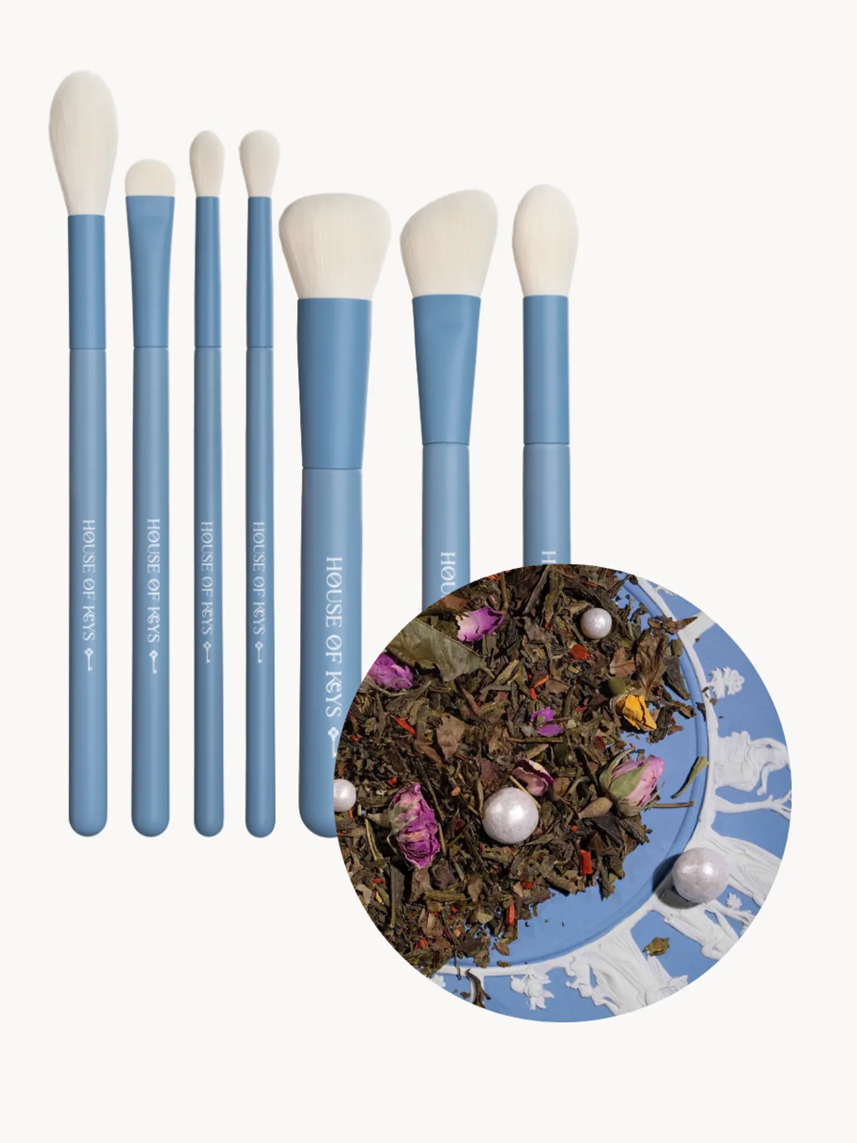 Набор из 7 кистей для макияжа GRACEFUL BLUE и чай ВЕСЕННИЙ ПЕТЕРБУРГ (60 г)