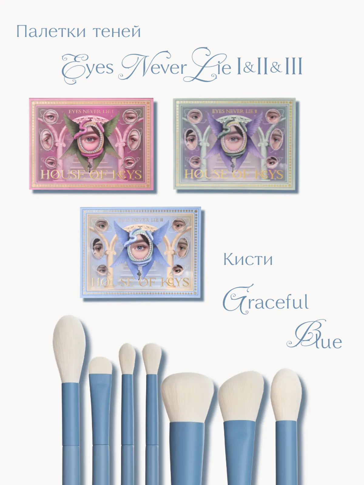 Набор из 7 кистей GRACEFUL BLUE и три палетки теней EYES NEVER LIE часть I, часть II и часть III