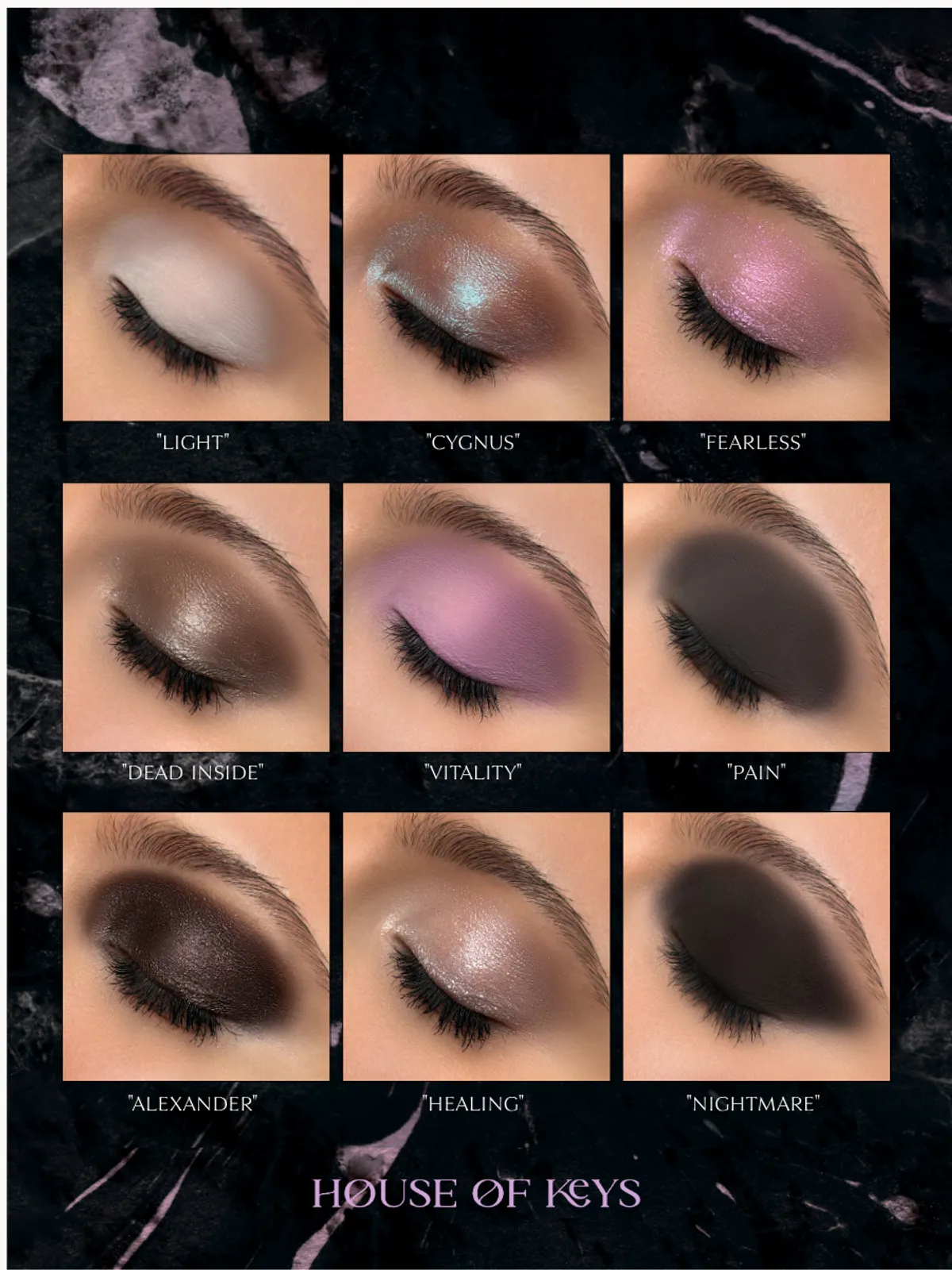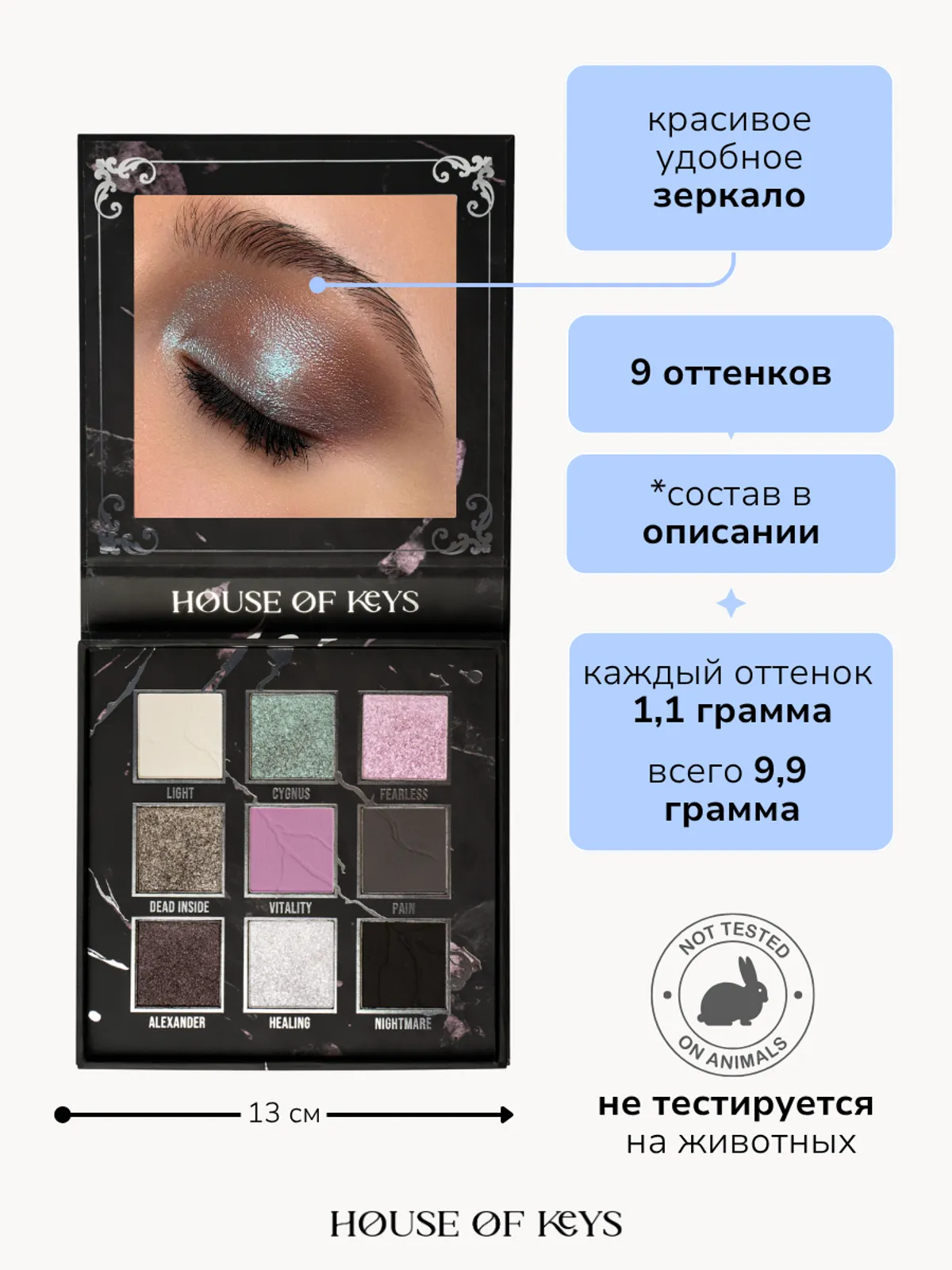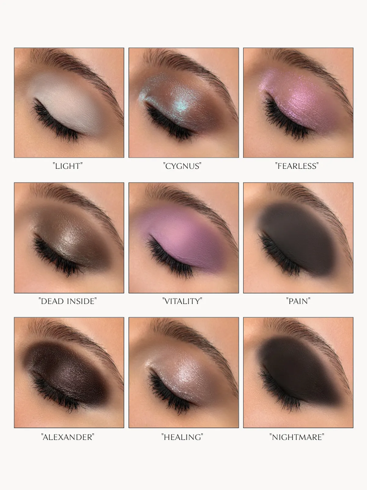 Alexander — полуматовый темно-коричневый сатин, отлично работает как база под оттенок NIGHTMARE для достижения глубого черного цвета в макияже